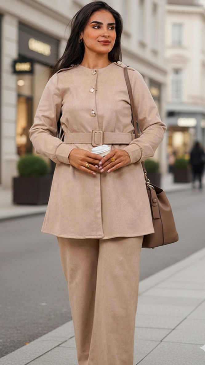 Chic 3-Piece Knitwear Set – Blue Turtleneck Top, Wide-Leg Pants & Long Cardigan
